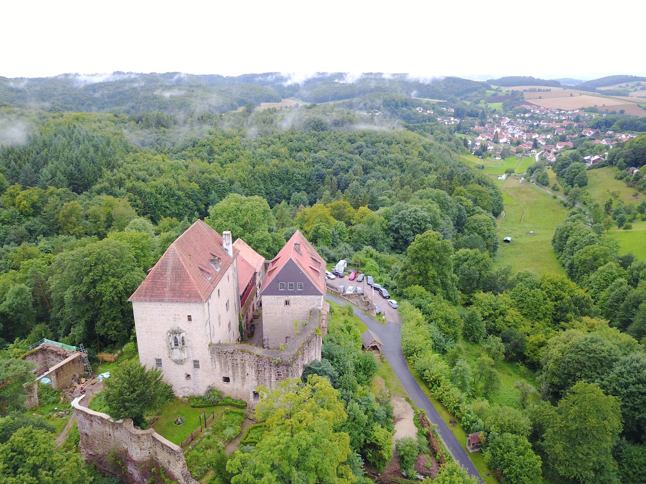 Die Burg liegt etwas abseits vom Ort Nentershausen / Waldhessen inmitten eines ausgedehnten Wald und Landschaftsschutzgebietes - mitten in Deutschland.